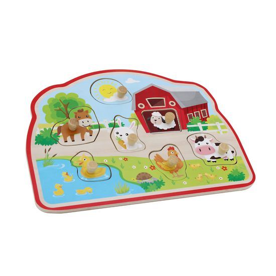 Introduce your child to the wonders of the farm animal with this adorable Wooden Peg Puzzle. Designed for tiny hands, each piece features a cute animal and a wooden peg for easy lifting, helping toddlers develop fine motor skills, shape recognition, and hand-eye coordination